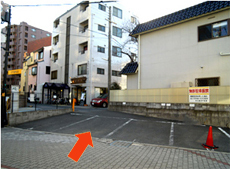 医院斜め前の左から2番目の B のスペースが当院駐車場です。