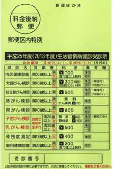 市民健診をご希望の方は、お手元の受診ハガキをお持ち下さい。